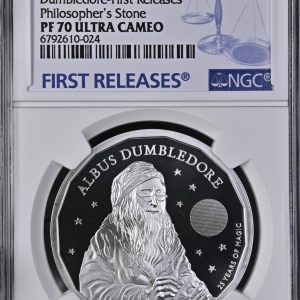 Lot 7: Great Britain: Harry Potter and the Philosopher’s Stone Series: Charles III Silver Proof 2 Pounds (1oz) “Professor Dumbledore” of 2023 Proof 70 NGC.