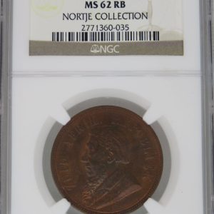 Lot 6: South Africa: ZAR Bronze Penny of 1898 MS 62 Red & Brown NGC.