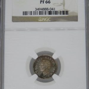 Lot 6: South Africa: Union Silver 3 Pence of 1956 Proof 65 NGC.