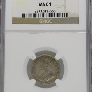 Lot 8: South Africa: Union George V Silver 6 Pence of 1923 MS 64 NGC