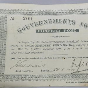 Lot 8: South Africa: Anglo Boer War Issues: ZAR HONDERD Pond Gouvernements Noot Pretoria of 1900