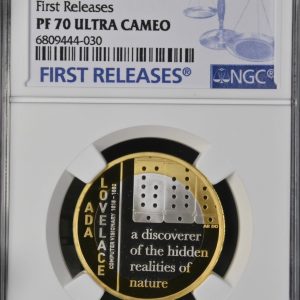 Lot 8: Great Britain: Charles III gilt-silver proof colorized “Ada Lovelace” 2 Pounds of 2023 Proof 70 NGC.