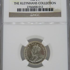 Lot 8: South Africa: Union George V Silver 6 Pence of 1933 MS 64 NGC.