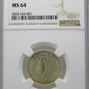 Lot 8: South Africa: Union George VI Silver One Shilling of 1938 MS 64 NGC.