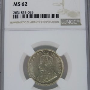 Lot 8: South Africa: Union George V Silver Two Shillings (Florin) of 1924 AU 58 NGC