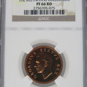Lot 8: South Africa: Union George VI bronze 1/4 penny (farthing) of 1952 Proof 65 Red & Brown NGC.