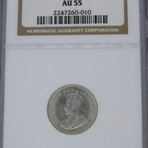 Lot 8: South Africa: Union George V Silver 6 Pence of 1933 AU 55 NGC.