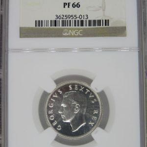 Lot 8: South Africa: Union George VI silver One Shilling of 1948 Proof 66 NGC.