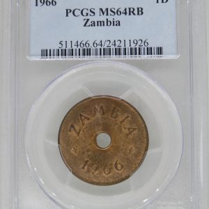 Lot 8: Zambia: Bronze Penny of 1966 MS 64 Red & Brown PCGS.
