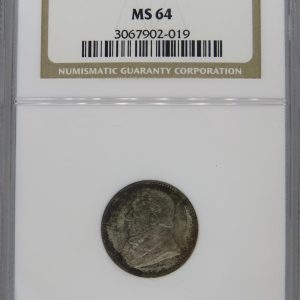Lot 9: South Africa: Paul Kruger ZAR Silver 6 Pence of 1896 MS 64 NGC.