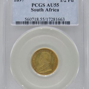 Lot 9: South Africa: Paul Kruger ZAR Gold Halfpond of 1897 AU 55 PCGS