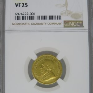 Lot 9: South Africa: Paul Kruger ZAR gold halfpond of 1893 VF 25 NGC.