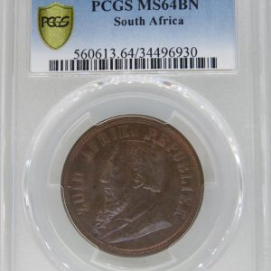Lot 9: South Africa: Paul Kruger ZAR Bronze Penny of 1898 MS 64 Brown PCGS.