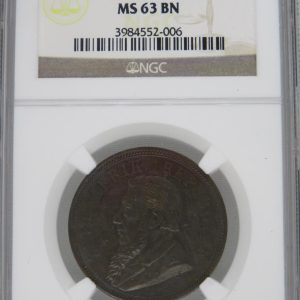 Lot 9: South Africa: Paul Kruger ZAR Penny of 1892 MS 61 Brown NGC