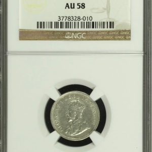 Lot 5: South Africa: Union George V Silver 6 Pence of 1924 AU 58 NGC