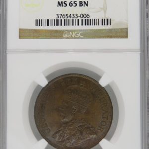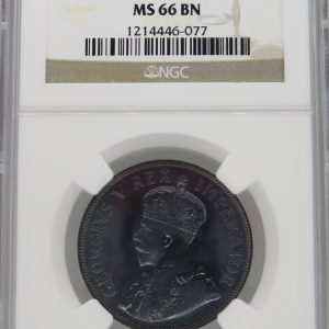 Lot 3: South Africa: Union George V Halfpenny of 1924 MS 65 Brown NGC.