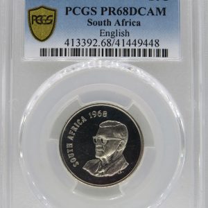 Lot 18: South Africa: Republic Silver “English” 20 Cents of 1968 Proof 68 Deep Cameo PCGS