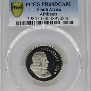 Lot 19: South Africa: Republic Silver “Afrikaans” 20 Cents of 1969 Proof 68 Deep Cameo PCGS