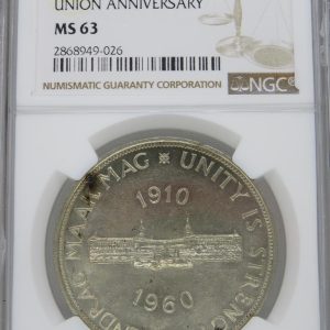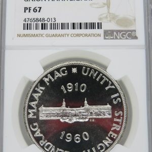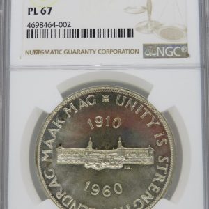 Lot 19: South Africa: “Union Anniversary” Silver 5 Shillings (Crown) of 1960 PL 67 NGC