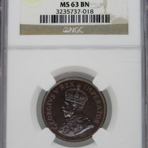 Lot 6: South Africa: Union George V Penny of 1929 MS 64 Brown NGC