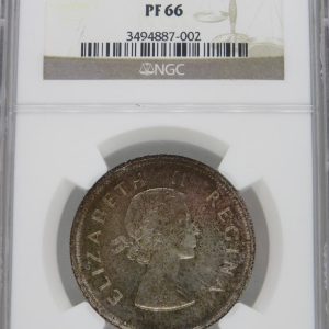 Lot 4: South Africa: Union Elizabeth II Silver 2.5 Shillings (Halfcrown) of 1954 Proof 66 NGC.