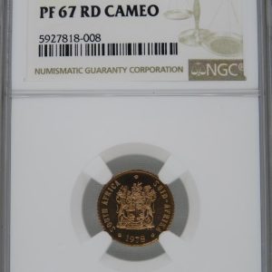 Lot 18: South Africa: Republic 1/2 Cent of 1978 Proof 67 Red Cameo NGC.