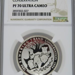 Lot 20: South Africa: Republic Silver R1 “Conservation” of 1994 Proof 70 NGC.