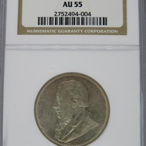 Lot 4: South Africa: Paul Kruger ZAR Silver 2 Shillings of 1894 AU 55 NGC.