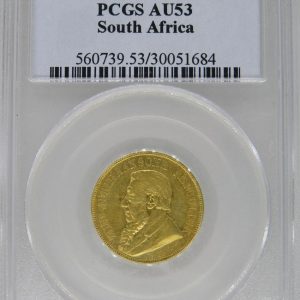 Lot 5: South Africa: Paul Kruger ZAR Gold Pond of 1895 AU 53 PCGS.