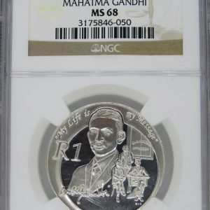 Lot 17: South Africa: Republic Silver R1 “Mahatma Gandhi” of 2008 MS 68 NGC.
