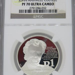 Lot 20: South Africa: Republic Silver R1 “John Maxwell Coetzee” of 2011 Proof 70 NGC.