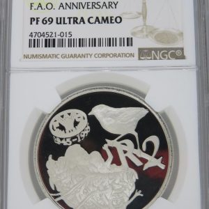 Lot 22: South Africa: Republic Silver R2 “Food and Agricultural Organisation Anniversary” of 1995 Proof 69 NGC.