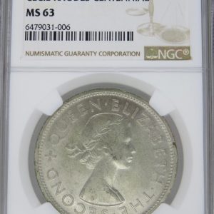 Lot 4: Southern Rhodesia: Cecil Rhodes Centennial Crown of 1953 MS 63 NGC.