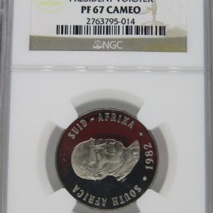 Lot 7: South Africa: Republic Nickel 50 Cents of 1982 Proof 67 Cameo NGC.
