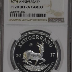 Lot 31: South Africa: Republic Krugerrand “50th Anniversary” 1oz Fine Silver of 2017 Proof 70 NGC.