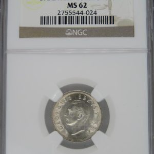 Lot 3: South Africa: Union George VI Silver 6 Pence of 1949 MS 62 NGC.