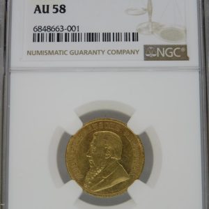 Lot 28: South Africa: Paul Kruger ZAR Gold Pond of 1896 AU 58 NGC.