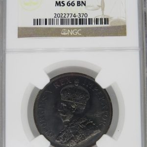 Lot 29: South Africa: Union George V Penny of 1923 MS 66 Brown NGC.
