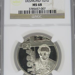 Lot 40: South Africa: Republic Protea R1 Silver “Desmond Tutu” of 2006 MS 68 NGC.