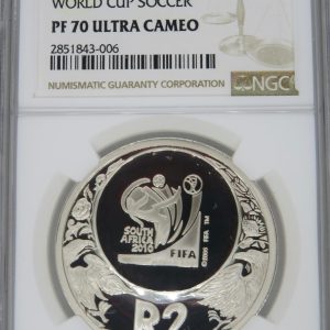 Lot 42: South Africa: Republic Silver R2 “FIFA World Cup Soccer” of 2006 Proof 70 NGC.