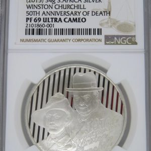 Lot 44: South Africa: Winston Churchill 50th Anniversary of Death Silver Medal of 2015 Proof 69 NGC.