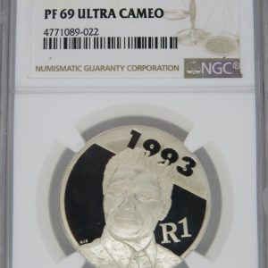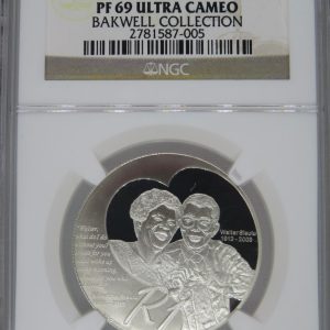 Lot 31: South Africa: Republic Protea Silver R1 “Walter & Albertina Sisulu” of 2012 Proof 69 NGC.