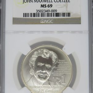 Lot 30: South Africa: Republic Protea Silver R1 “John Maxwell Coetzee” of 2011 MS 69 NGC.