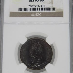Lot 7: South Africa: Union George V Half Penny of 1924 MS 65 Brown NGC.
