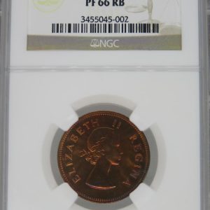 Lot 8: South Africa: Union Elizabeth II Half Penny of 1960 Proof 66 Red & Brown NGC.