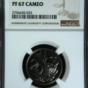 Lot 36: South Africa: Republic nickel 20 cents of 1973 Proof 67 Cameo NGC.