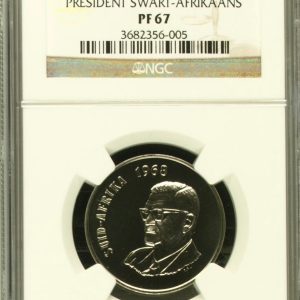 Lot 39: South Africa: Republic nickel 50 cents “President Swart – Afrikaans” of 1968 Proof 67 NGC.