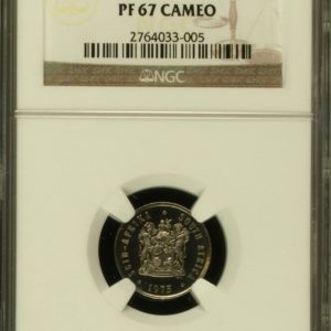 Lot 24: South Africa: Republic Nickel 5 cents of 1975 Proof 67 Cameo NGC.