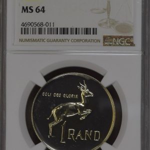 Lot 29: South Africa: Republic silver R1 of 1990 MS 64 NGC.