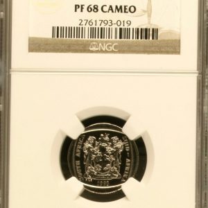 Lot 31: South Africa: Republic nickel plated copper R1 of 1993 Proof 68 Cameo NGC.